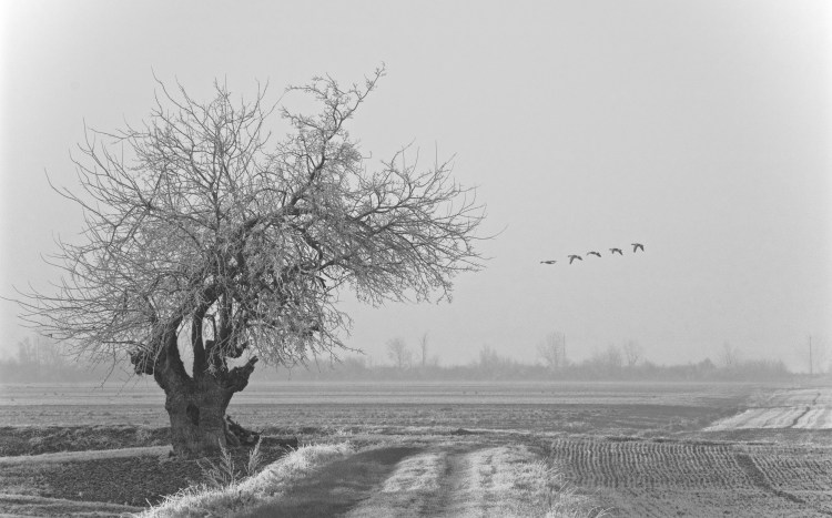 E’ una foto che racconta il territorio e trasmette emozioni, una foto che riesce a portarci in un tempo indefinito, nei gelidi inverni della pianura in cui ci si può smarrire ma che allo stesso tempo ci ricordano casa.